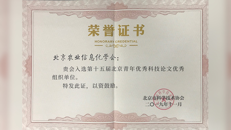 北京农业信息化学会入选第十五届北京青年优秀科技论文优秀组织单位。
