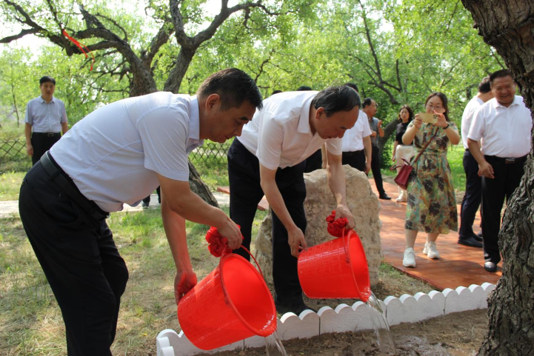在稷山国家板枣公园的“院士林”,赵春江院士为认养的千年古枣树培土、浇水