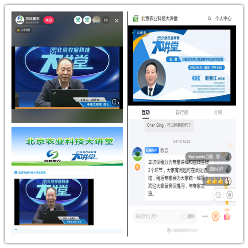 2022年4月13日,中国工程院院士、国家农业信息化工程技术研究中心首席科学家、北京农业信息化学会理事长赵春江应邀做客《北京农业科技大讲堂》,做了题为《以区县为单元推进数字农业农村发展》的报告。