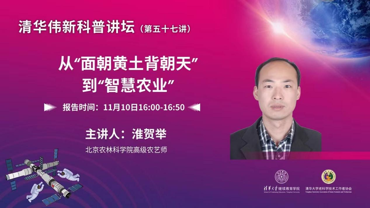 2022年11月10日,由清华大学继续教育学院和清华大学老科学技术工作者协会联合举办的清华伟新科普讲坛(第五十七讲)在清华大学举办。规划设计部淮贺举博士受邀为中小学生作《从“面朝黄土背朝天”到“智慧农业”》的科普报告。