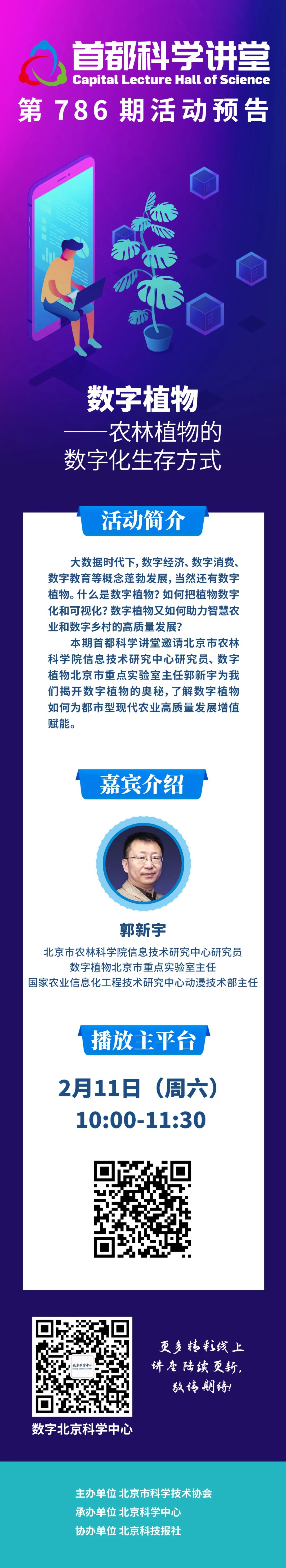 首都科学讲堂 | 第786期活动预告:数字植物——农林植物的数字化生存方式