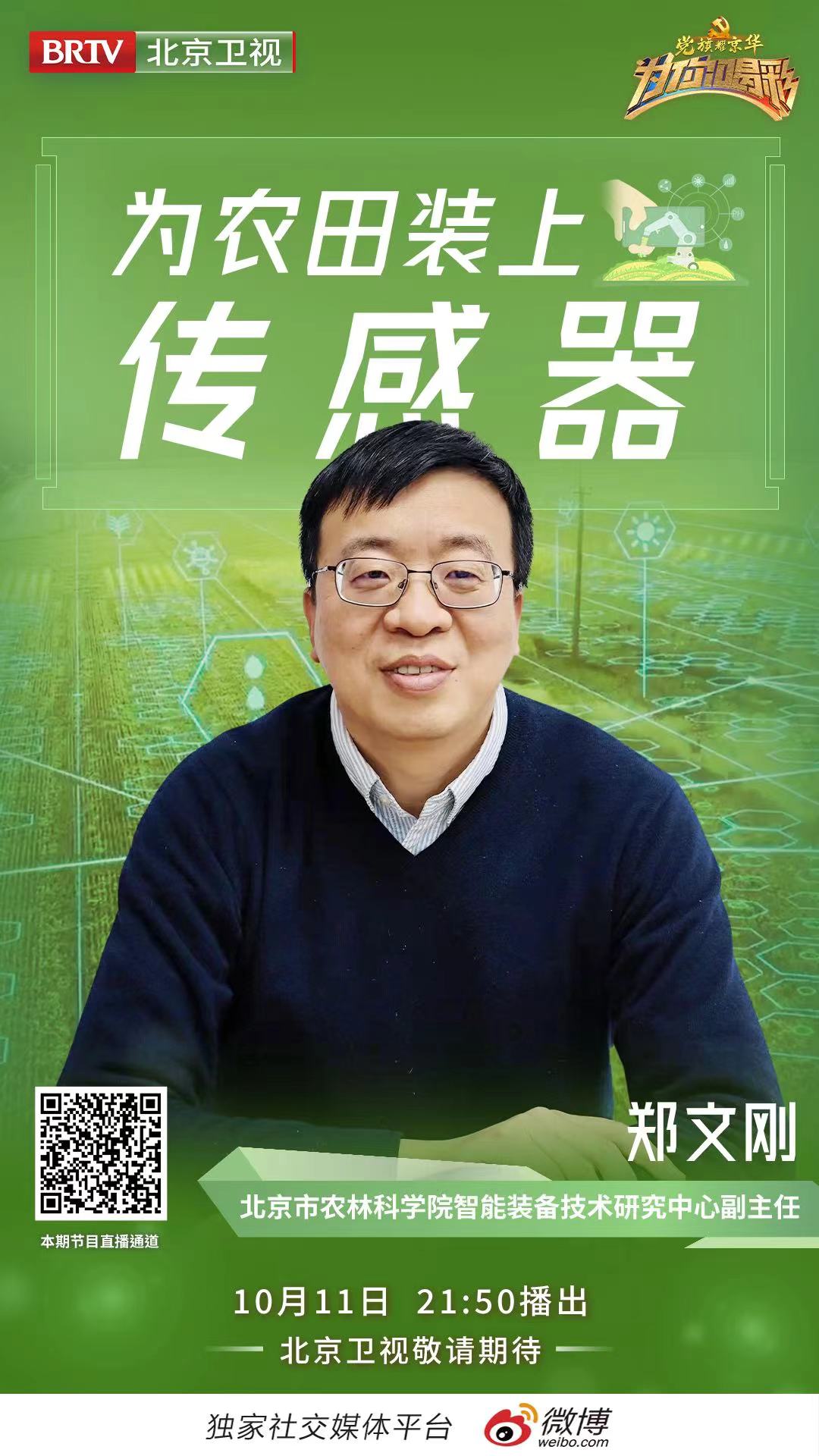 北京农业信息化学会副理事长郑文刚做客北京卫视 讲述为农业装上传感器的故事