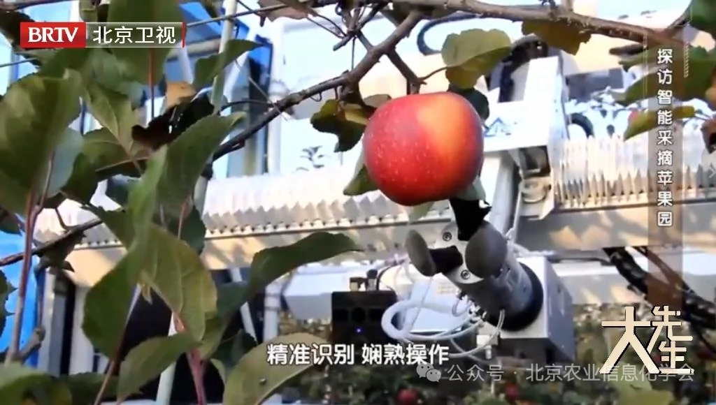 随着物联网、人工智能技术的发展,赵春江院士将目光投向智慧农业的更高阶段。在陕西苹果试验园,他带领团队研发的多机械臂采摘机器人,借鉴资深果农采摘时的“旋拧” 技巧,通过立体视觉成像与AI算法,实现了苹果的精准识别与低损采摘。针对不同果园的果树高度差异,团队创新设计模块化机械臂,可灵活调节高度与角度,解决了工业机械臂无法适配农田环境的难题。
