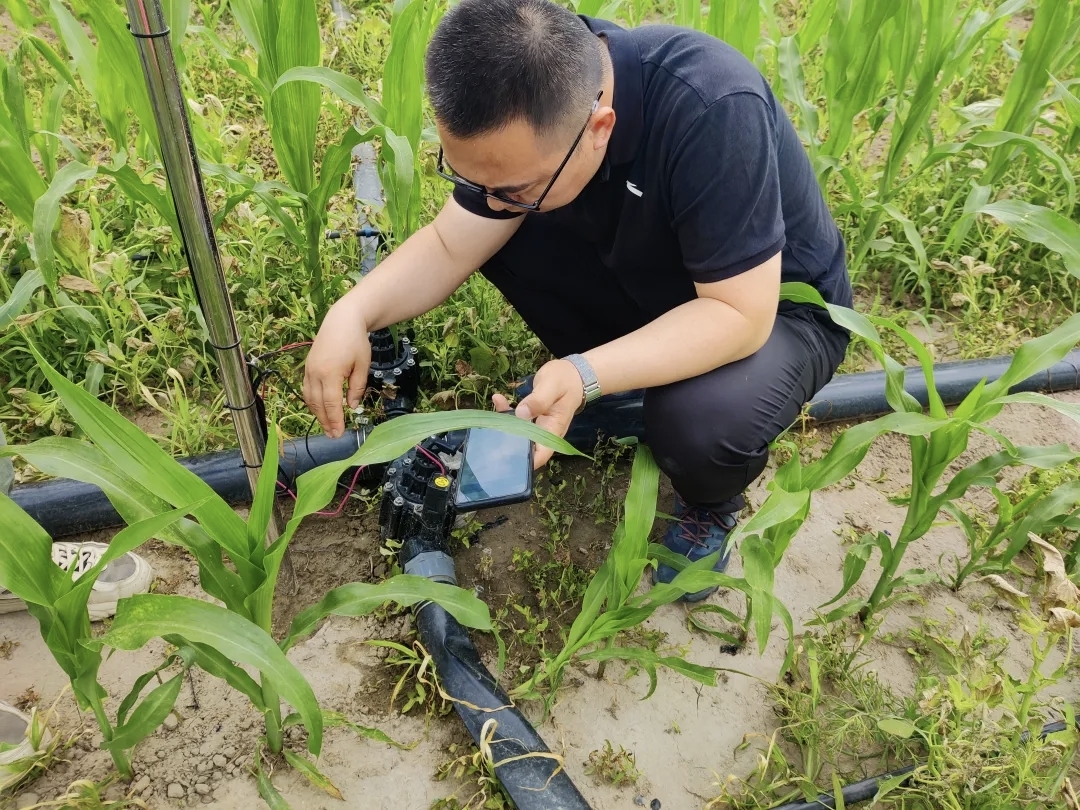 今年粮食智慧生产示范区的建设,聚焦智能化管控平台打造,依托无线阀控器和智能灌溉控制器等远程控制设备,整合PC端与手机小程序,构建了一体化的远程操作与智能管控体系,确保灌溉与施肥管理的精准性与高效性。在此基础上,智能灌溉管控平台基于作物生长环境的实时反馈,利用自动化灌溉及同步施肥技术,实现了玉米生产过程的全程智能化管理和闭环控制。科技化平台管理,推动农事上云,数字下田。